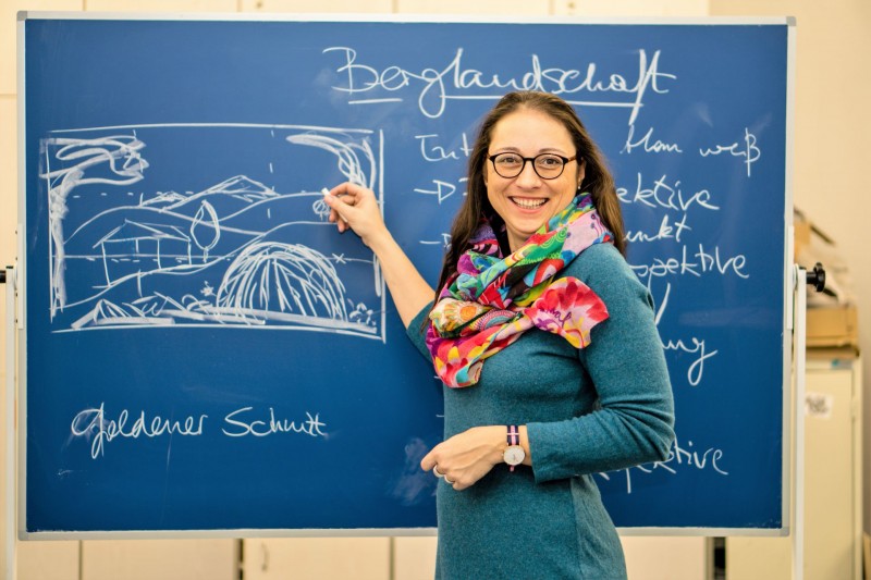 Mein Spektrum hier weitet sich kontinuierlich aus: Im ersten Jahr habe ich nur als Lehrerin für das Fach Kunst gearbeitet, dann kam die Kam-Leitung dazu. Im Unterricht ist es mir wichtig, dass die Schüler eigene Lösungen finden und viele Wege ausprobieren, um ihre individuellen Gefühle, Ideen und Überzeugungen auszudrücken. Seitdem ich ein Fernstudium abgeschlossen habe, unterrichte ich auch Deutsch als Fremdsprache. Da ich aus Kasachstan stamme, betreue ich unsere russischen Schüler und Eltern. Sie sind bei ihrem ersten Besuch unserer Schule froh, ihre Muttersprache zu hören. Dies stärkt ihre Gewissheit, später auch auf die schwierigsten Fragen Antworten zu bekommen. Seit einigen Jahren organisiere und koordiniere ich das Wochenendprogramm und aus meinem Hobby ist das Neigungsfach „Modedesign“ entstanden. Unsere Modenschau im Frühjahr ist ein echtes Highlight!