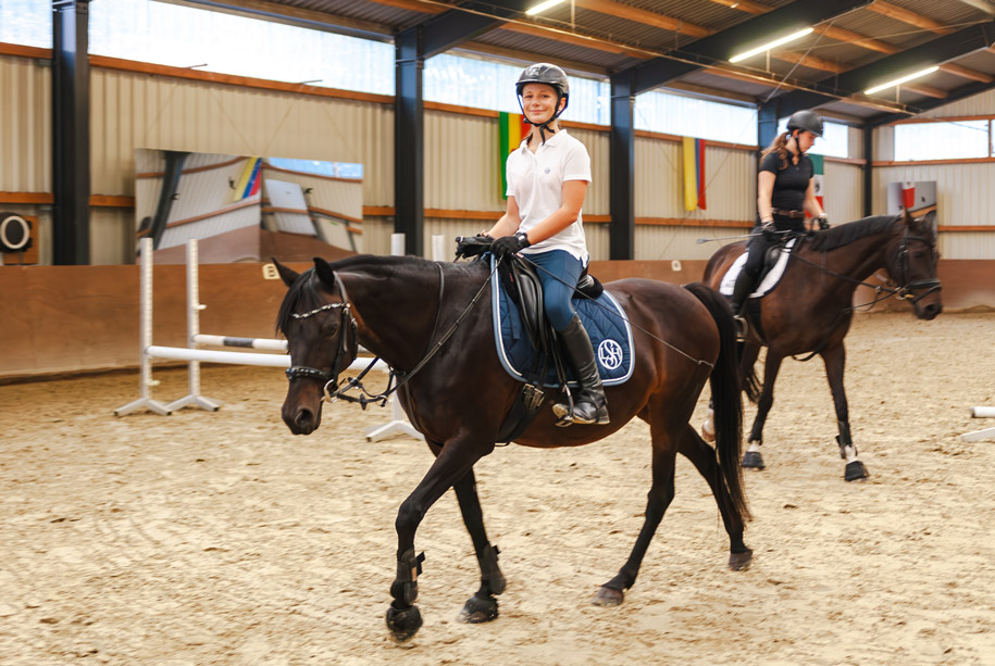 Jugendliche mit eigenem Pony oder Pferd entwickeln gemeinsam mit unseren Reitlehrer:innen individuelle Trainingspläne und erhalten regelmäßig Einzelunterricht. Die Pferde werden im Beritt weiter ausgebildet, und Lehrgänge zur Vertiefung der Kenntnisse gehören selbstverständlich dazu. Auch in den Ferien können Pferde im Internat bleiben und werden fachmännisch versorgt.